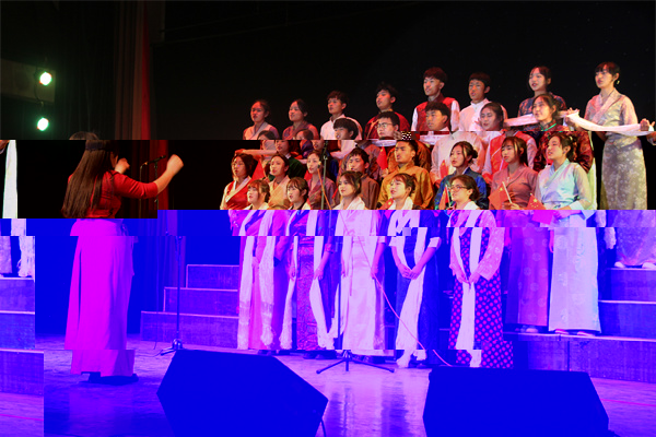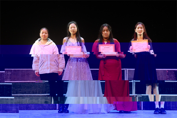 緊接着,合唱班級以獨到的表現手法演唱歌曲。《愛因為在心中》《平凡之路》等歌曲歌頌了“人因理想而不平凡”;歌曲《珠峰天使》描繪了一幅白雪皚皚、仙霧缭繞的珠峰雪山圖,表達出藏區人們對祖國的贊美之情;《少年中國說》等歌曲表達了同學們報效祖國的決心和信心,激勵了一師學子堅定理想,不負年少。歌唱表演結束,主持人宣布比賽結果,各領導為獲獎班級和個人頒獎。
